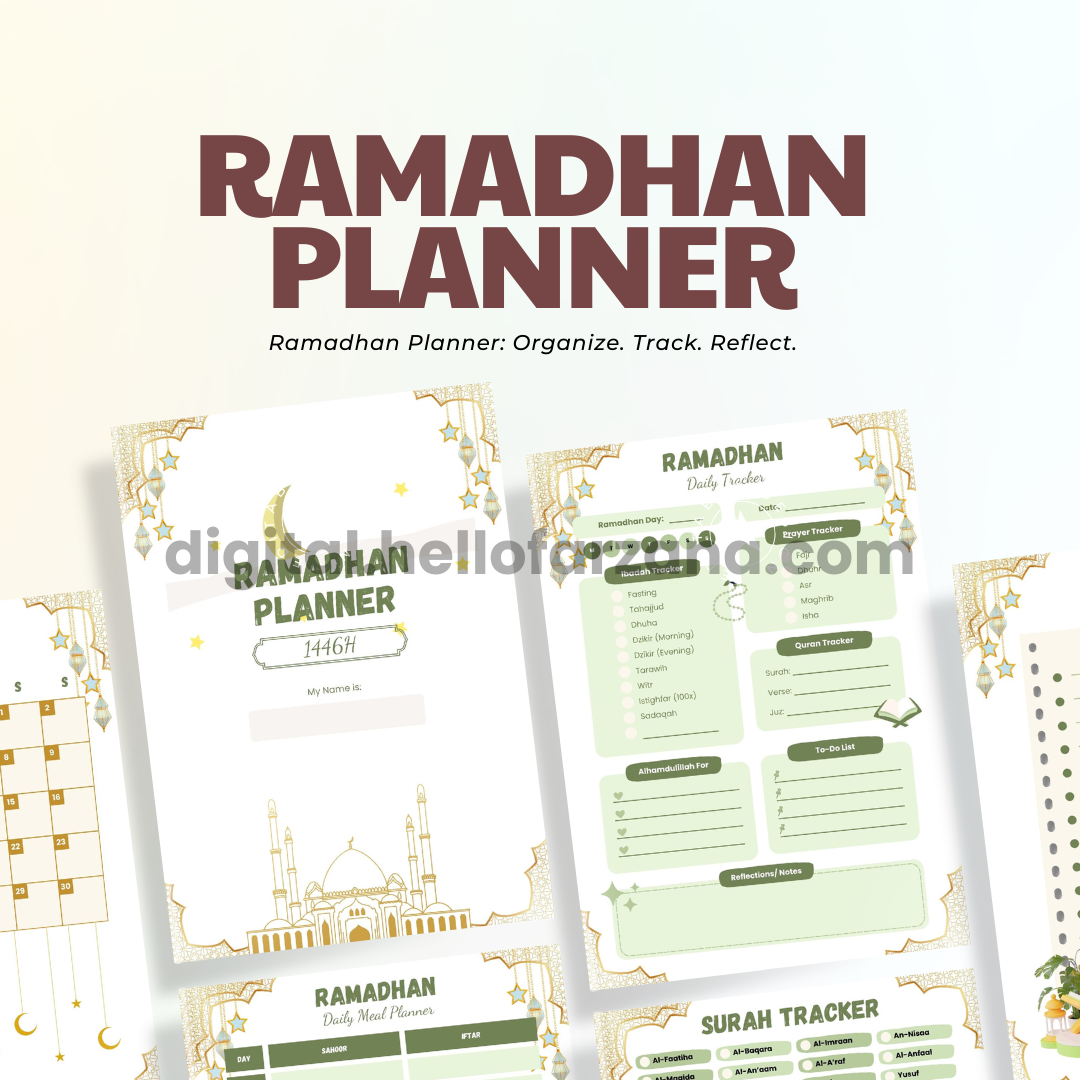 Make every day of Ramadhan meaningful with this comprehensive planner! Download, print, or use it digitally and start your journey toward a more organized and spiritually rewarding Ramadhan.