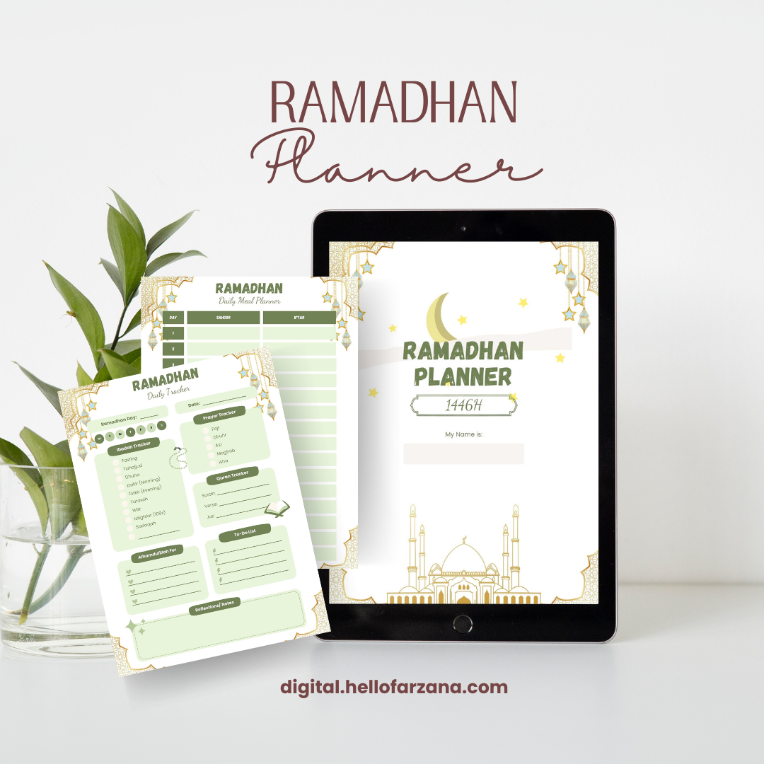 Make this Ramadhan your most organized and fulfilling one yet! Our beautifully designed Ramadhan Planner is here to help you stay on track with your ibadah, meal plans, Quran recitation, and personal reflections. Whether you’re a busy professional, a parent, or simply someone who wants to make the most of this holy month, this planner is your perfect companion.